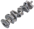 Eagle featherweight forged 4340 steel Cranks feature a non-twist forging, lightweight counterweight design to reduce rotating weight, .125" fillet radiuses for superior strength so chamfered / narrowed bearings required, nitrided surface and micropolished. Intended for restricted-class competition use. Lightweight rods and pistons required for ease in balancing.