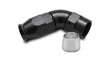 Vibrant's offering of non-swivel High Flow Hose End Fittings, designed exclusively for use with our offering of PTFE lined flex hose, deliver the type of quality, leak-free reliability and incredible ease of assembly that industry professionals will appreciate. Now also available in -12 AN. These CNC Machined 6061 Aluminum Alloy Hose Ends feature a full flow design and are optimal for use in race fuel systems as well as Nitrous, Cooling, Oil, Power Steering and Coolant (not suited for brake and hydraulic line applications). Each of these Hose Ends include an Aluminum olive that compresses to the PTFE liner for simple, leak free assembly. Available in Black Hard Anodized finish only.