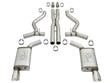 This cat-back exhaust system is constructed of 2-1/2 IN mandrel-bent 304 stainless steel tubing for maximum strength and durability. Finishing off this exhaust system are dual 4-1/2 IN diameter polished 304 stainless steel clamp-on exhaust tips. The tips features a laser etched aFe POWER logo for a unique style. This system features high-flow 409 stainless steel polished mufflers, producing an aggressive sound. Muffler finish may vary. This system produces a deep sound unleashing all available horsepower and torque. Designed to equalize and evenly distribute exhaust pulses reducing drone, improving sound. Utilizing factory style flanges and hangers this system is a direct bolt-on system, which requires no cutting or modifications for a hassle-free installation. A mitered merge x-pipe is used to balance and evenly distribute exhaust pulses traveling through the exhaust system, minimizing exhaust drone and maximizing scavenging. State-of-the-art computer-aided design technology is utilized for precise vehicle fitment. 100% MIG-Welded for race-proven strength and durability.