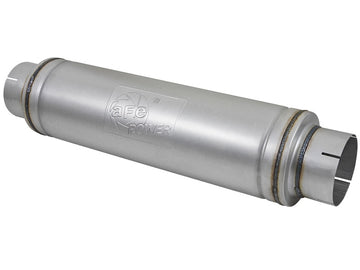 The aFe Universal fit Aluminized Steel Performance Muffler is designed to provide a deep, throaty, powerful sound on acceleration, but maintain a smooth sound at idle. This muffler is constructed of brushed finished aluminized steel and uses a straight through perforated core with heat resistant packing to reduce backpressure and maximize exhaust flow. You will see increased performance and improved throttle response over the factory exhaust. Also featuring a stamped aFe Power logo for an aggressive style. Muffler Specifications: 7" Center Inlet /Outlet, 24"L Body Diameter. All aFe exhaust systems are engineered and manufactured in our Corona, California manufacturing facility.