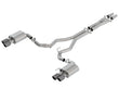 WITHOUT Active Valve Exhaust. NOT recommended for use on Convertibles. 3" diameter system. System contains a merge X-Pipe for increased performance and improved sound. System features Borla(r)'s Polyphonic Harmonizer Technology which utilizes patented units that contain pipes of different diameters and lengths to create multiple exhaust notes that harmonize to deliver a clean, rich, full-bodied sound to the Borla(r) mufflers. The mufflers then enhance this sound to the character and volume appropriate for our Touring, S-Type and ATAK(r) systems. System also features 4" carbon fiber tips with black anodized centers. Borla(r) Cat-Back(tm) and Axle-Back multi-core technology is designed to unleash hidden horsepower. Increased exhaust velocity adds power, driving excitement, fuel economy, and the distinctive Borla(r) Sound of Power respected by motoring enthusiasts everywhere. Each system is built from premium T-304 stainless steel, superior to T-400 series knockoffs (such as 409), to give you the absolute best in performance and durability. Ultra-smooth mandrel bends ensure maximum flow & power, and precision computer numerical control (CNC) manufacturing ensures an accurate fit. Best of all, Borla(r) stands behind every system with a Million-Mile Warranty. Just what you'd expect from the world's most experienced (and most winning) exhaust brand.